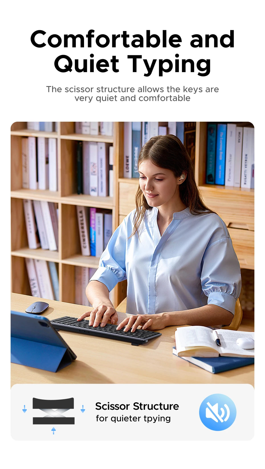 - MacBook-Style Scissor Switches: Engineered with a precision scissor structure for 99% silent clicking and a comfortable, tactile feel—ideal for quiet offices or nighttime work.